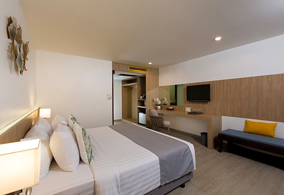 Deluxe Tropical View is 344 square feet and includes a double bed 131-150 width plus balcony, extra beds on demand, and cable tv and is Wheelchair-accessible.